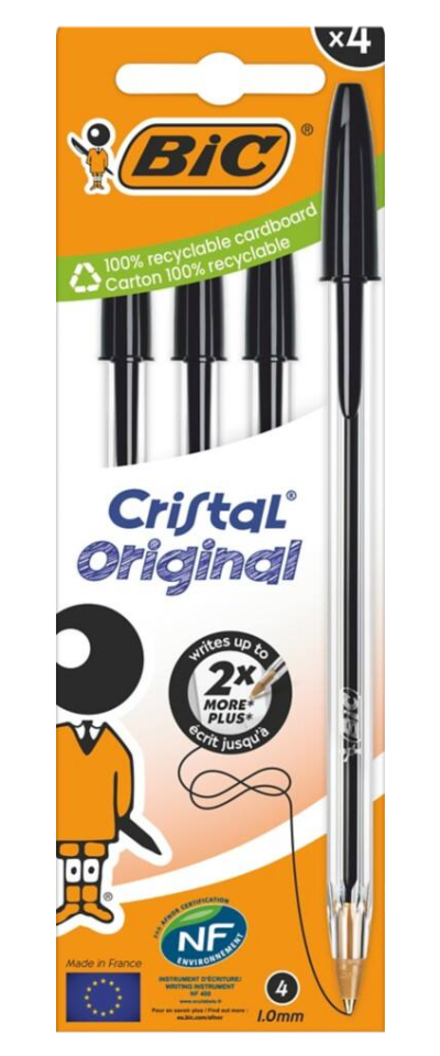 Bic Cristal 4pk Black Ballpoint Pens (box 4)