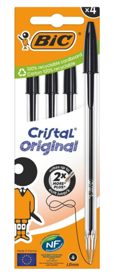 Bic Cristal Black Ballpoint Pens (box 4)