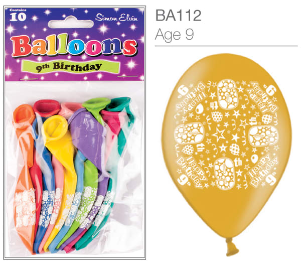 9th Birthday Balloons - 10pk