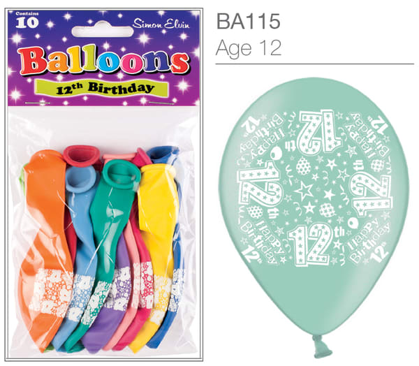 12th Birthday Balloons - 10pk