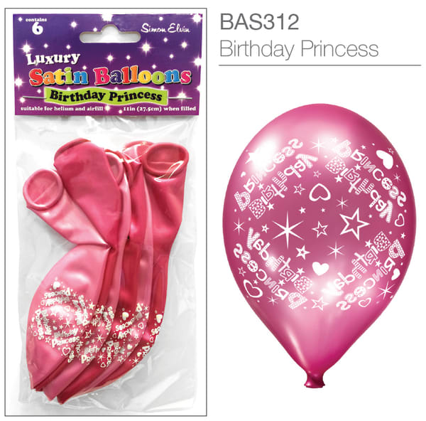 Birthday Princess Luxury Satin Balloons - 6pk