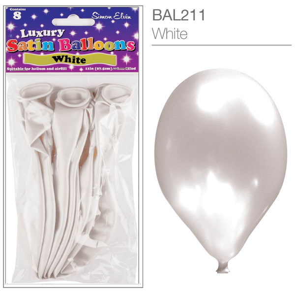 White Luxury Satin Balloons - 8pk