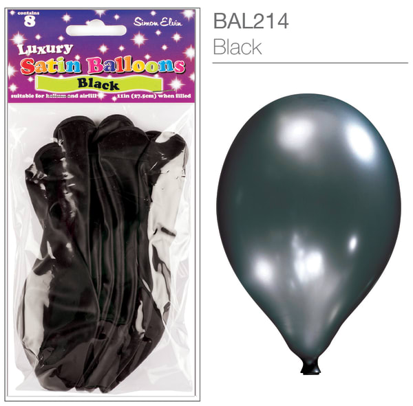 Black Luxury Satin Balloons - 8pk
