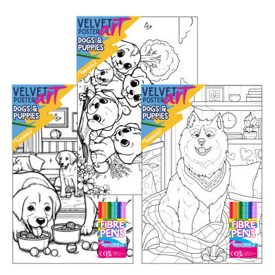 Squiggle® Velvet Poster Art offers excellent value, with vibrant velvet illustrations to colour and 6 colouring pens with every poster.