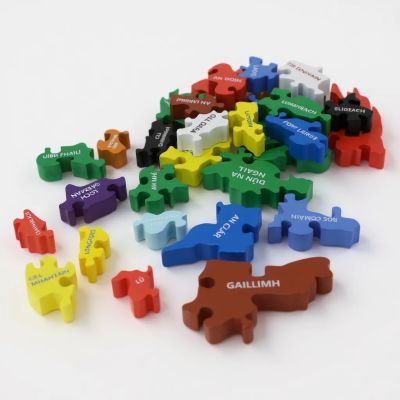 The Ireland wooden puzzle is an engaging and educational toy that features jumbo pieces, each uniquely colored to represent its respective county, complete with the county flag colors. This two-sided puzzle not only displays the vivid colors but also includes the names of the Irish counties on each piece, adding an extra layer of learning and fun for puzzle enthusiasts of all ages. It's a wonderful way to explore the geography and heritage of Ireland while enjoying a challenging and entertaining activity.
